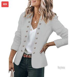 Women's Business Casual Blazer with Buttons Pockets Open Front