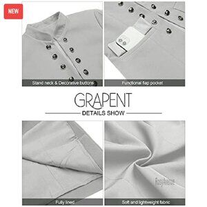 Style: Business casual blazer with decorative buttons and flap pockets