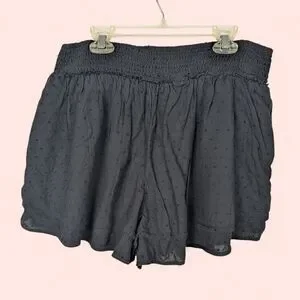 Hollister skort with a smocked elastic waist and layered ruffle hem. Lightweight dotted-texture fabric offers subtle visual interest. Pull-on design for easy wear. Versatile black pairs well with casual tops.