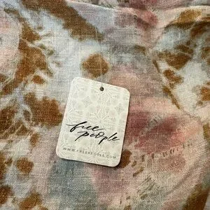 Lightweight tie-dye linen tank. Soft pink and warm brown swirl pattern. Casual scoop neckline. Breathable and easy to layer.