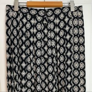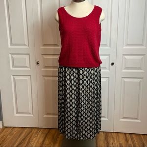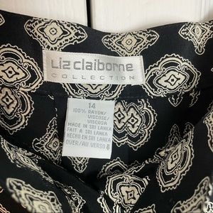 Pleated shirt with functional button down closure and pockets. Marked as size 14 and made of rayon. Dry clean only care instructions. In EUC.