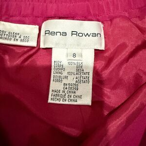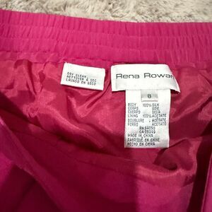 Keywords: Rena Rowan silk skirt, magenta pencil skirt, vintage silk formalwear, office wear, womens size 8, pink silk skirt, elegant lined skirt, cocktail attire.