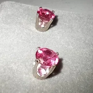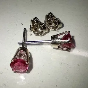 These Gemstones are ~4.5mm Round, Genuine with No Enhancements, Vivid Pink Color, Eye-Clean, & the Earrings Weigh ~0.97g/pair.
