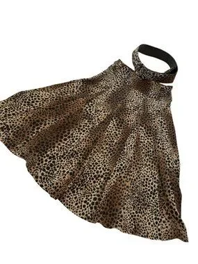 Lapis Leopard Print Swing Skirt With Belted Waist Polyester Stretchy Panel Size