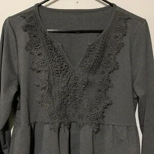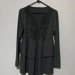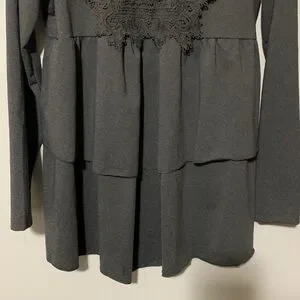 Chic grey 2 tiered ruffle dress with front lacey Datsun as shown.Perfect for any occasion.