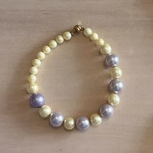 This classic pearl bracelet combines cream and purple pearls for a timeless look. Perfect for any occasion.