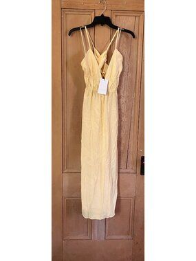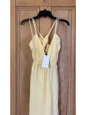 Zara Womens Sunny Flowy Spaghetti Strap Maxi Dress Size Medium Yellow SP NWT.