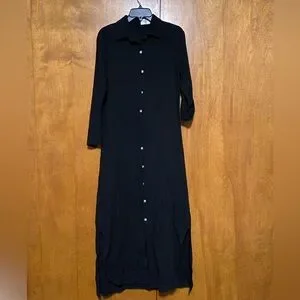 Long Sleeve Collard Button Down Shirt Dress Black With Side Slits Size Small