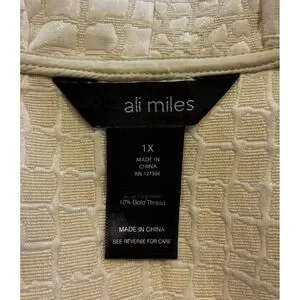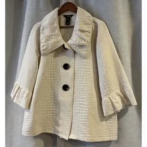 Ali Miles Peplum Swing Jacket 1X Ivory Womens Textured Knit 3/4 Sleeve