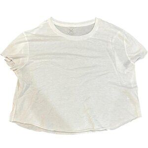Simple white tee with a casual fit. Perfect for any occasion. slightly cropped