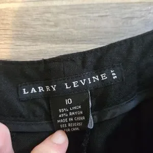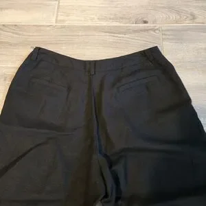 Larry Levine Linen Blend black Wide Leg Crop Pants Trousers Cuffed Hem Sz 16