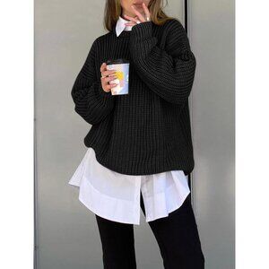 Trendy Black Ribbed Knit Oversized Sweater - Medium for Effortless Style