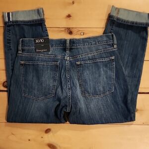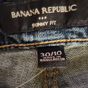 Banana Republic skinny crop fit jeans in blue denim. Classic five-pocket styling. Subtle contrast stitching. Slim silhouette for a modern look.