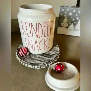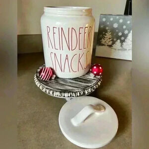 NEW Rae Dunn - REINDEER SNACKS - Fun Ceramic Canister with red letters