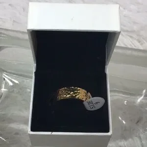 Titanium, gold metal, hammered finish, smooth inside for wearing comfort, unisex style, men’s or women’s, size 9, NWT, will come in gift box pictured, (box says Pandora inside)