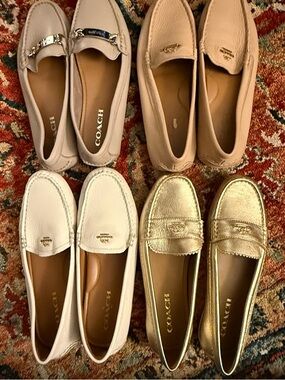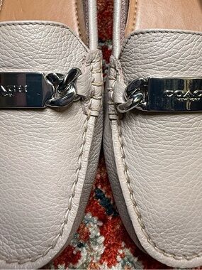 Leather with Coach buckle logo accents. Timeless rounded toe and low-profile design. Easy-to-wear styles for everyday use.