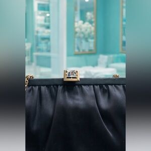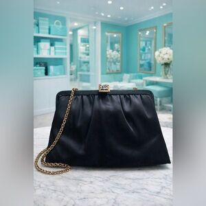 Vint. 1977 Black Satin purse clutch with gold chain. Designed by S.M Kent and given only to Avon representative.