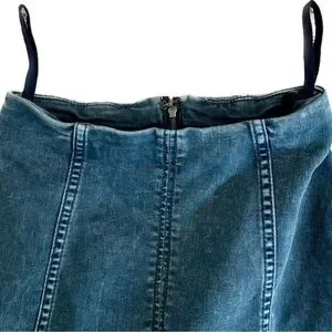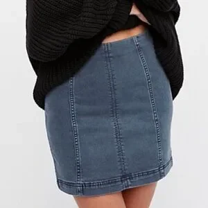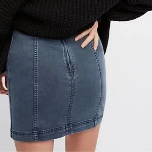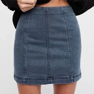 Free People Blue High Waisted Zip Back Casual Boho Cute Micro Mini Skirt size 4