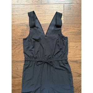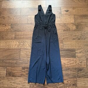 Athleta Savannah Black V Neck Wide Leg Jumpsuit Size 4 Stretch Athleisure