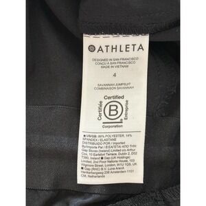 Athleta Savannah jumpsuit in black, women's size 4, featuring a flattering V‑neckline and a wide leg silhouette. Designed with a stretch performance fabric that offers comfort and ease for everyday wear, travel, or athleisure styling.