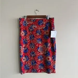 NWT LuLaRoe Red Tan Blue Floral Pencil Skirt