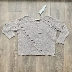 New Anthropologie One Grey Day Grace Merino Wool Knit Marle Koala Sweater.