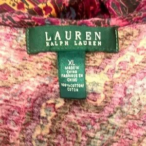 RALPH LAUREN Paisley Ruffle V-Neck Top - Purple