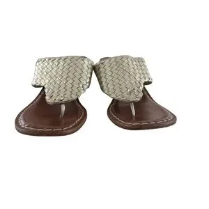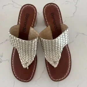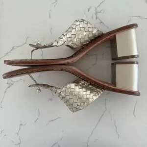 Bernardo Jinx Gold Woven Leather Thong Heels Women’s Size 10M Brazil Sandals