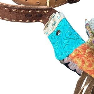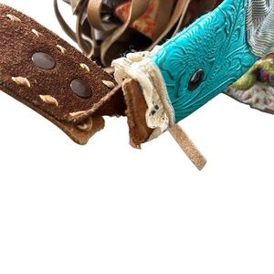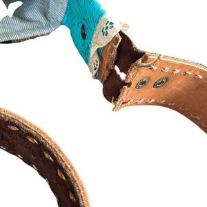 • Tooled turquoise leather accents