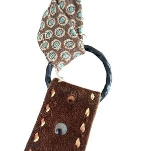 • Wide, adjustable brown suede strap with rustic stitching