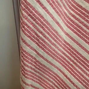 Pink and white striped Chevron print with navy blue piping