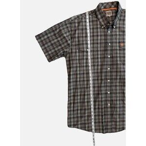 Cinch Men's XL Short Sleeve Button Down Shirt in Gray Green features a Western logo on the pocket, is made from 100% cotton. The collared neckline and button-down style add a classic touch, while the embroidered accents and plaid pattern add a touch of western flair.