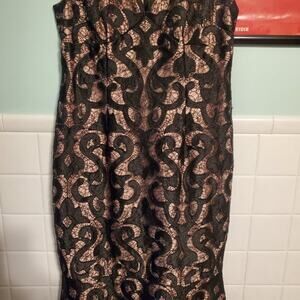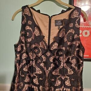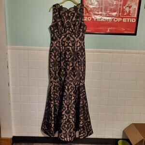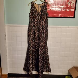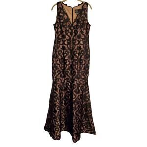 ADRIANNA PAPELL BLACK NUDE SLEVELESS GUIPURE MERMAID GOWN SIZE US 8
