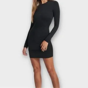 Vuori Women Long Sleeve Halo Essential Dress Size XS DreamKnit Black Heather NWT