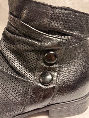 Miz Mooz Sallie Black Leather Ruched Ankle Boots - Button Detail Size 6.5