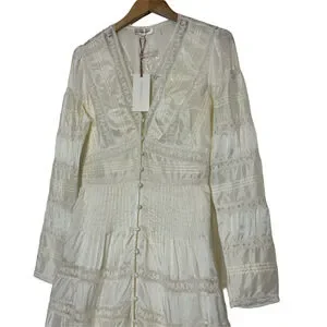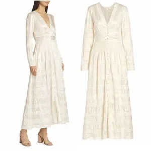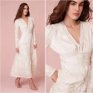 LoveShackFancy Ellitia Maxi Dress Victorian Lace Button Front Ivory NWT Size 4