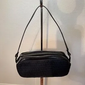 Vintage Fendi Zucca Zucchino Canvas Baguette Bag Black FF Monogram Double Zip