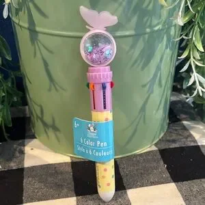 Make your little sweetie happy with this cute 6-color multi ink pen in pastel tones with a decorative shaker top. Smooth switch-action nibs for quick color changes. Lightweight and fun for journaling, note-taking, and crafts. Available in pastel pink, pastel blue, pastel purple, and white.