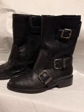 Vince Camuto Alicenta Black Leather Moto Buckle Booties Size 6.5