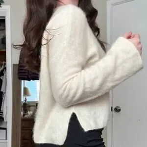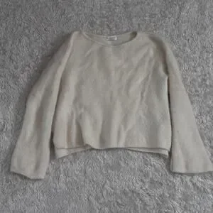 Tomorrowland Womens Small Brushed Cashmere Flared Sleeve Cream Crewneck Sweater