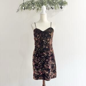 Vintage Y2K goth Velvet Whimsical Goth Dark Floral Mini Dress X7074