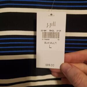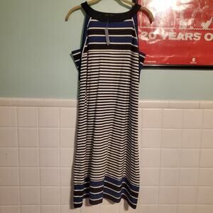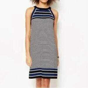 J. Jill Wearever Multi Striped Halter Dress Black Blue White, Stretch Jerseynorm