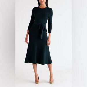 Eliza J Dark Green Long Sleeve Midi Dress with Waist Tie