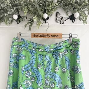 Lilly Pulitzer 100% Silk Adeline Floral Printed Skirt Size 8 Blue/green CP beach