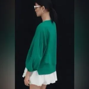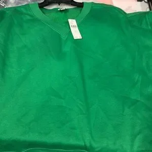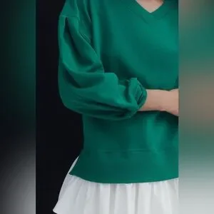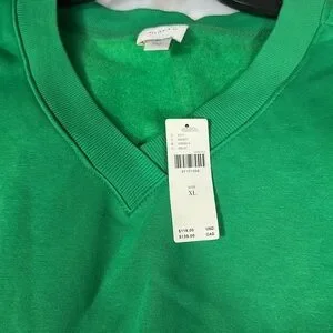 Maeve Long-Sleeve V-Neck Twofer Fleece Knit Pullover Kelly Green NWT Size XL