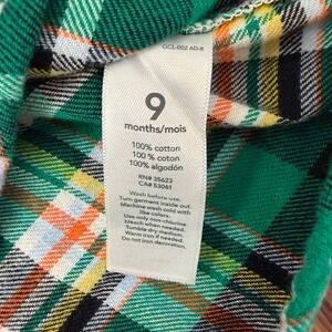 Carters Baby Green Plaid Flannel Button Down Shirt 9 Months