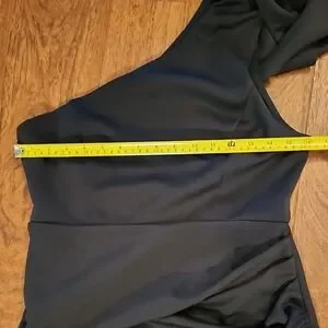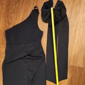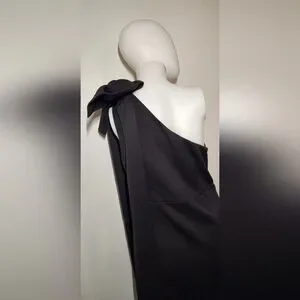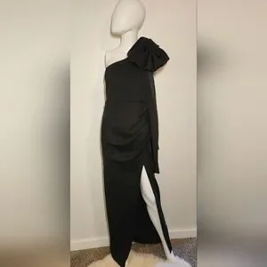Showpo Black One Shoulder Gown Dress With Statement Bow & High Slit Size 8