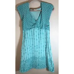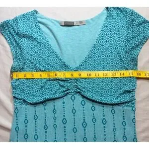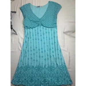 Athleta Knit Mini Dress Womens Size Medium Aqua Blue Boho Ruched V-Neck