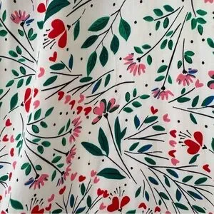 Scattered green leaf and red & pink floral print.