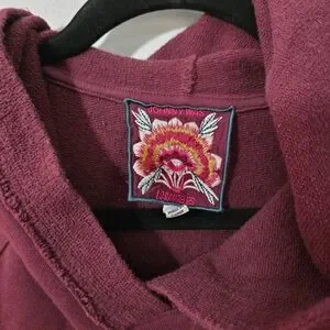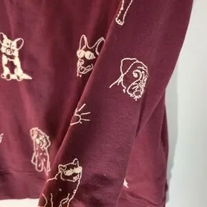 Johnny Was Maroon Pullover Hoodie with Cream Dog Motif